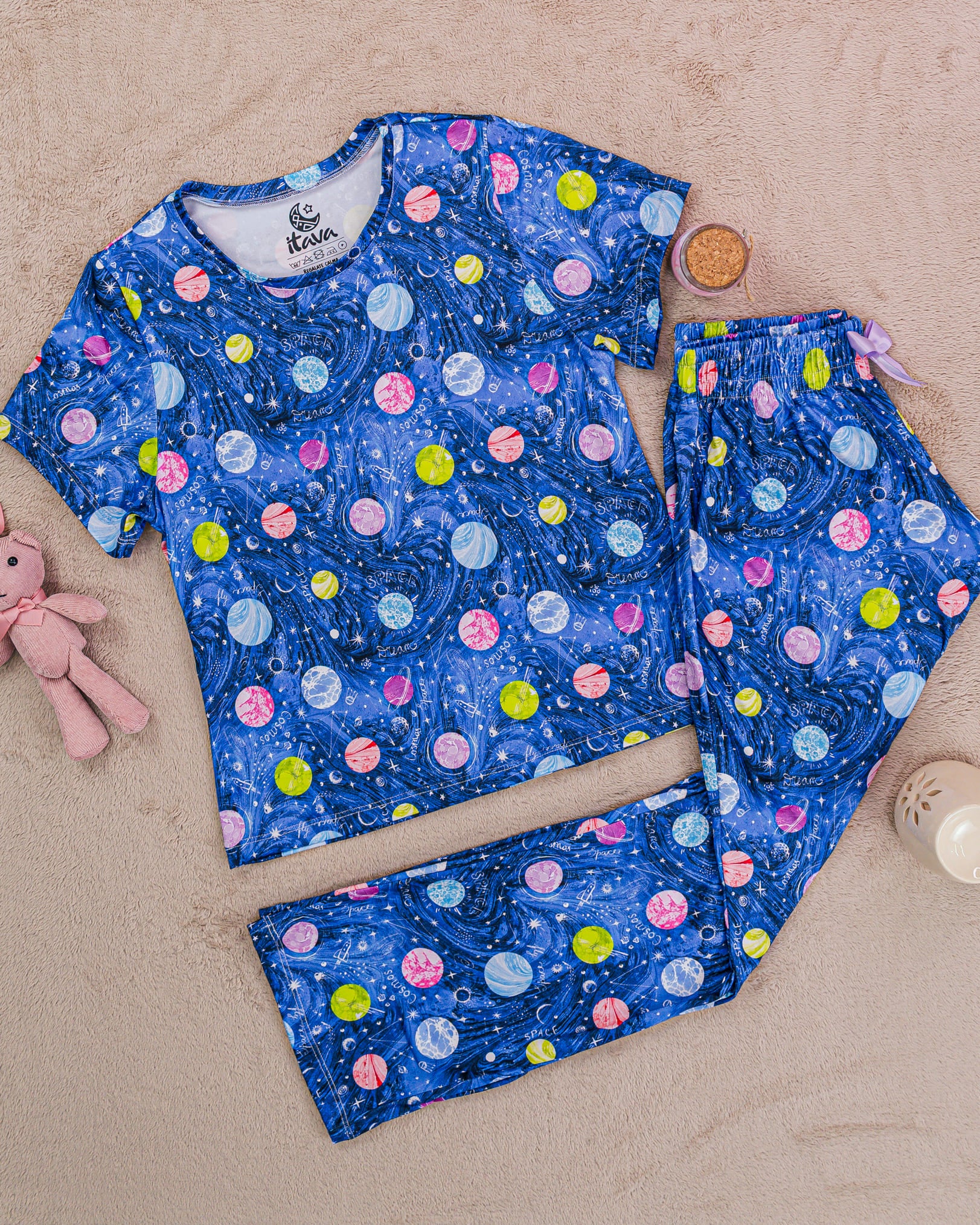 PIJAMA ESTAMPADA BLUSA + PANTALÓN COSMO